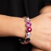 Faceted iridescent gems are pressed into sleek silver frames. The glittery frames are threaded along stretchy bands, creating a glamorous look around the wrist. Due to its prismatic palette, color may vary.