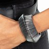 Layer after layer of glistening gold wire wraps around an oversized gold cuff. The center of the wire wrap comes to a peak, adding edge to the intense industrial display.