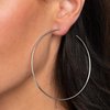 Delicately hammered in a subtle shimmer, a glistening silver wire dramatically curves into an oversized hoop for a flawless finish. Earring attaches to a standard post fitting. Hoop measures approximately 2 3/4" in diameter.