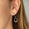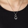 An asymmetrical silver ring links with a white rhinestone encrusted silver ring below the collar for a refined look. Features an adjustable clasp closure.