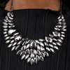 A smoldering collection of oversized teardrop and marquise cut hematite rhinestones daringly fan out from the collar, coalescing into intense interconnected frames. The dauntless display of dazzle locks in place, creating a stunning solitaire sparkle. Features an adjustable clasp closure.